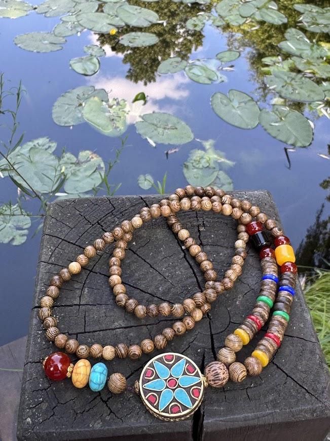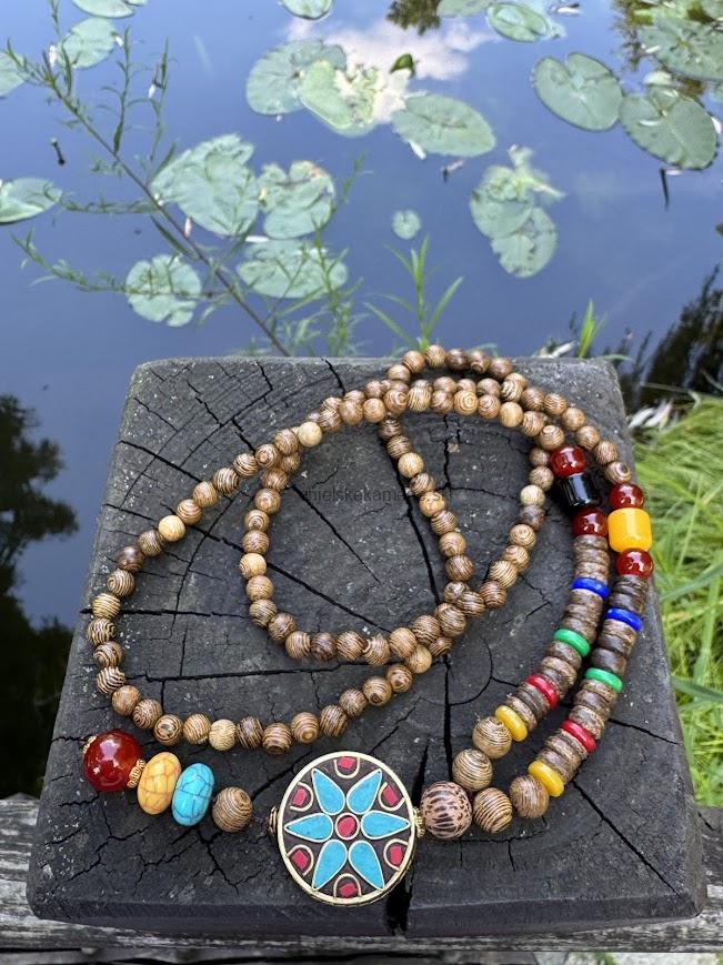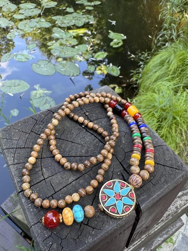 Unisex náhrdelník zo santalového dreva a nepálskych koráliek.