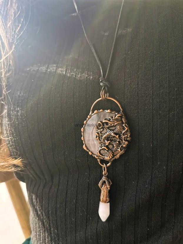 Dračia láska je prívesok z minerálu ruženín so symbolom draka.