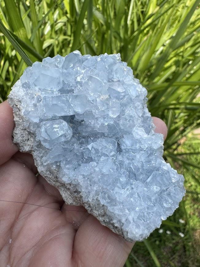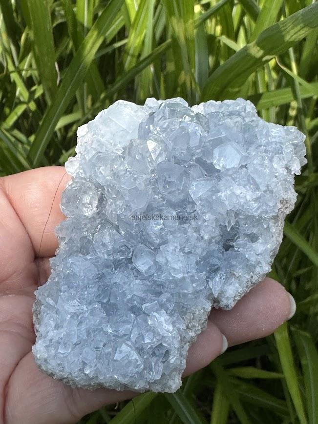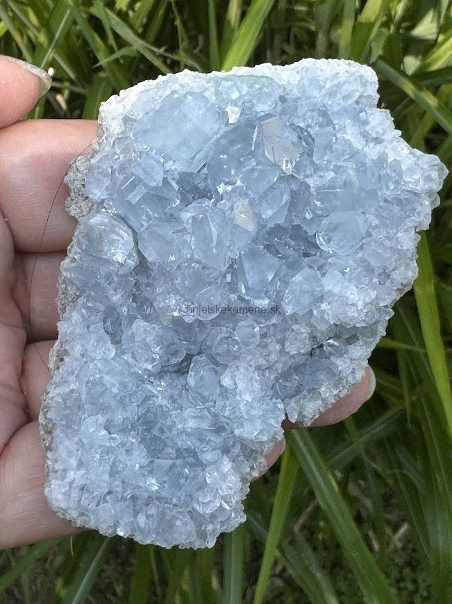 Drúza z anjelského celestínu. Unikátny kus. Veľkosť 9,5 cm, váha 305g. Pôvod Madagaskar.