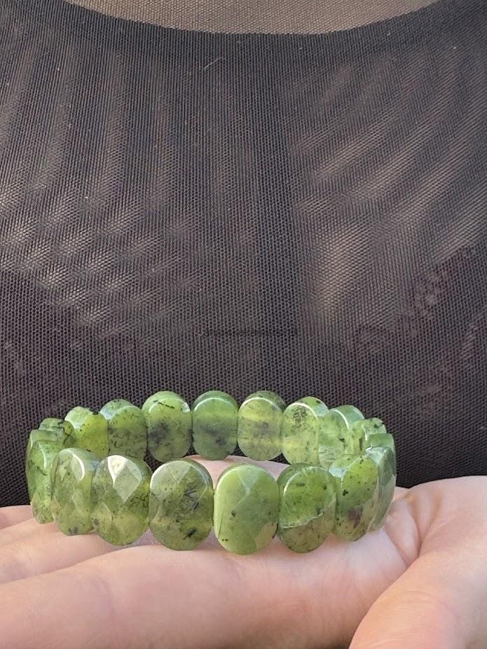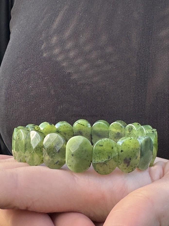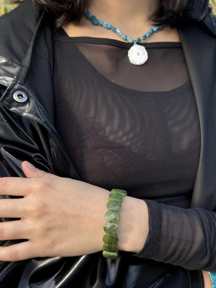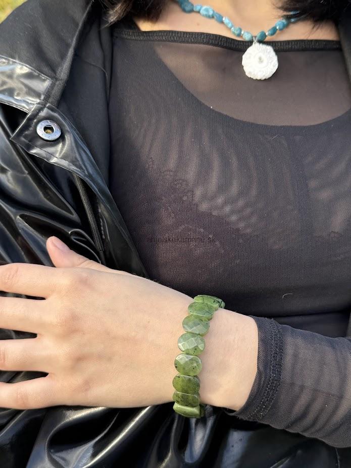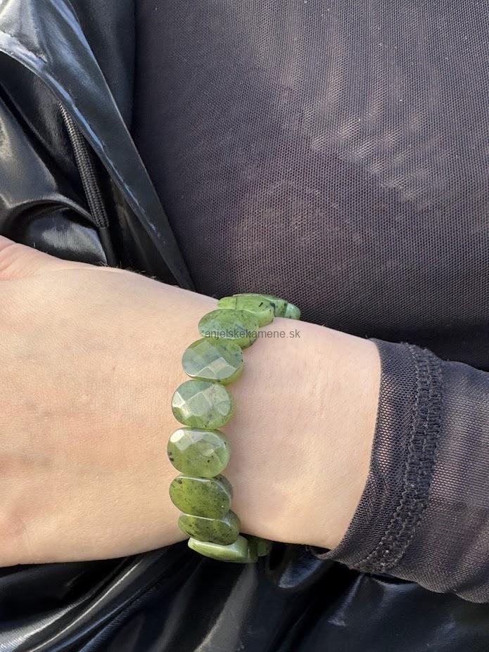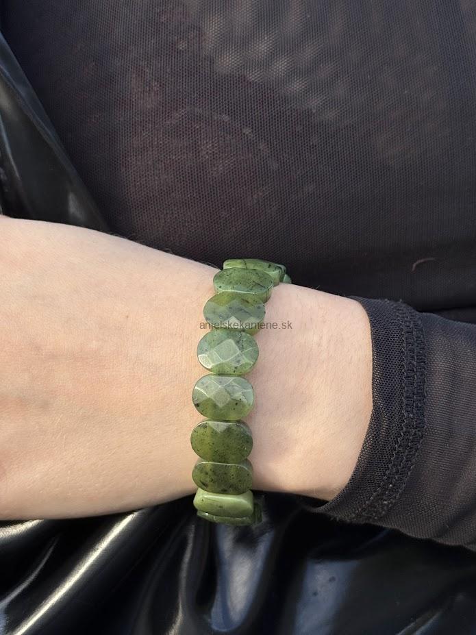 Náramok z fazetovaného nefritu - platničky vo veľkosti 14,5 x 10 mm.