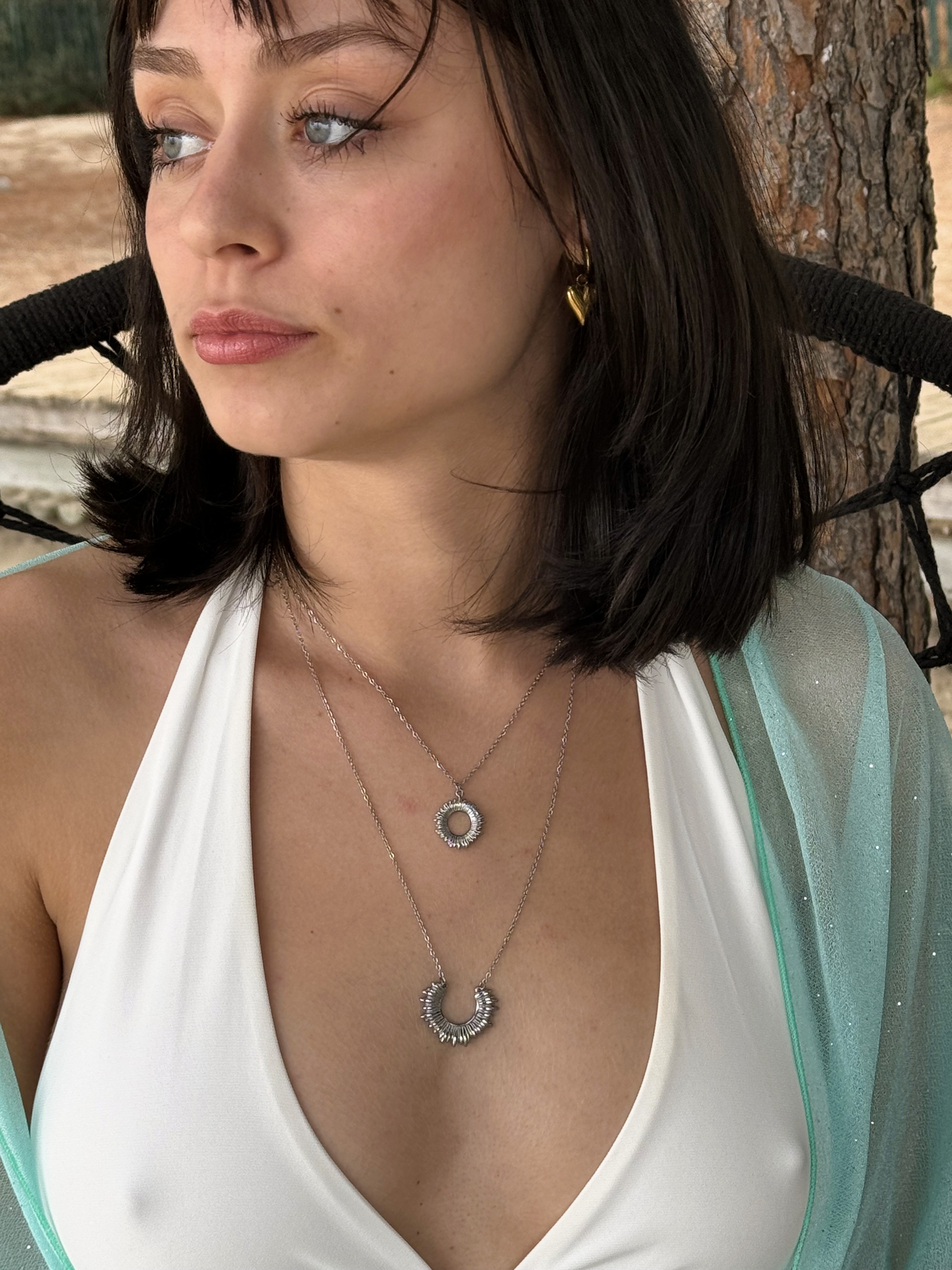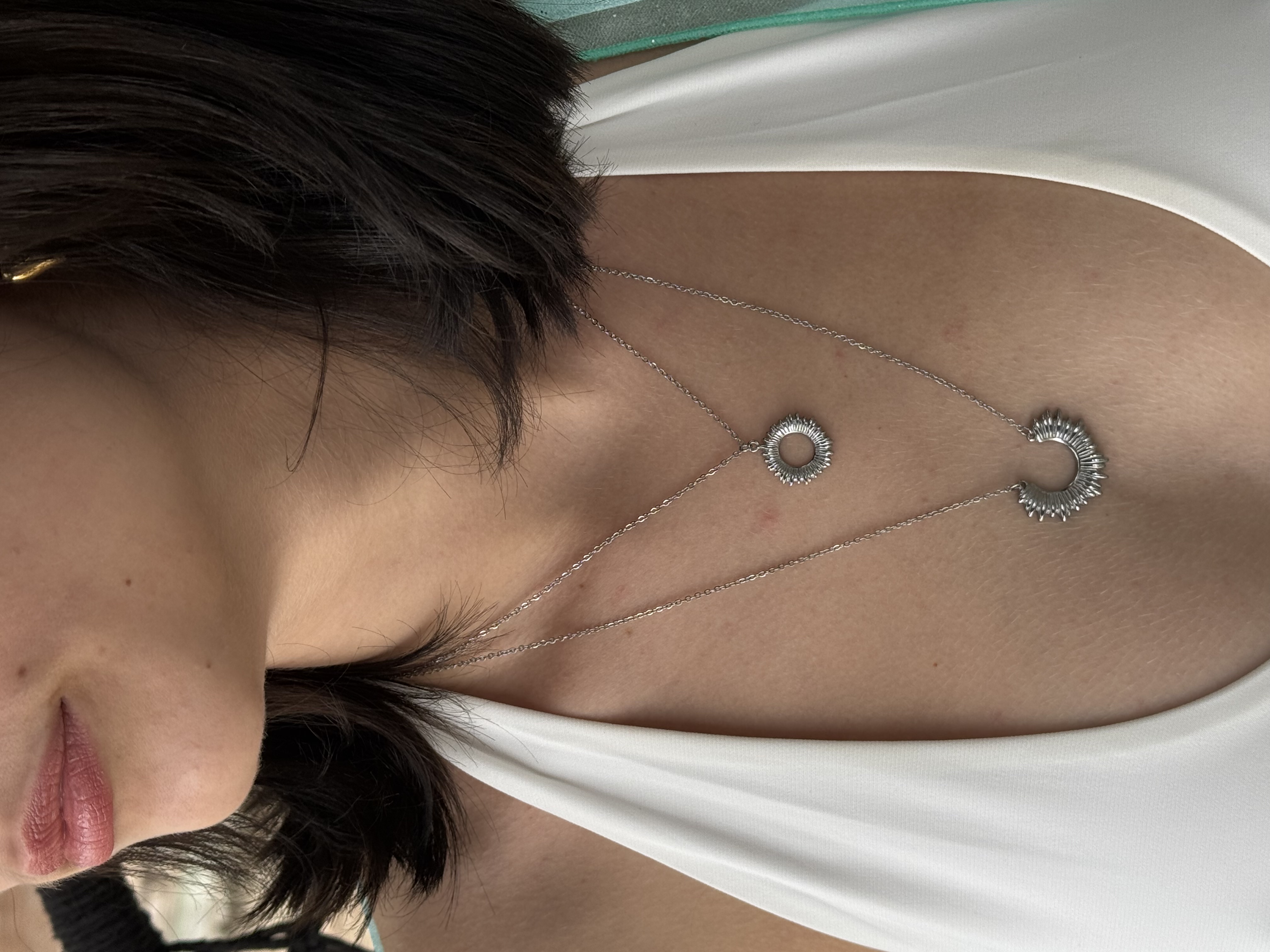 Dvojitý náhrdelník je vodeodolný z nehrdzavejúcej titánovej ocele.