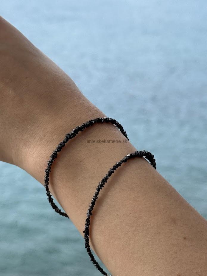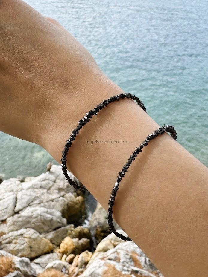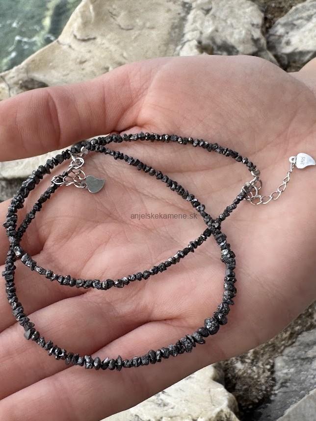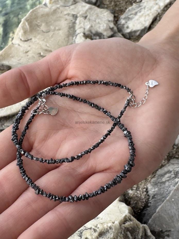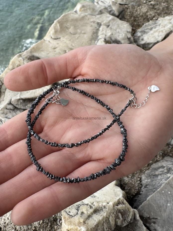 Diamant surový čierny - strieborné zapínanie