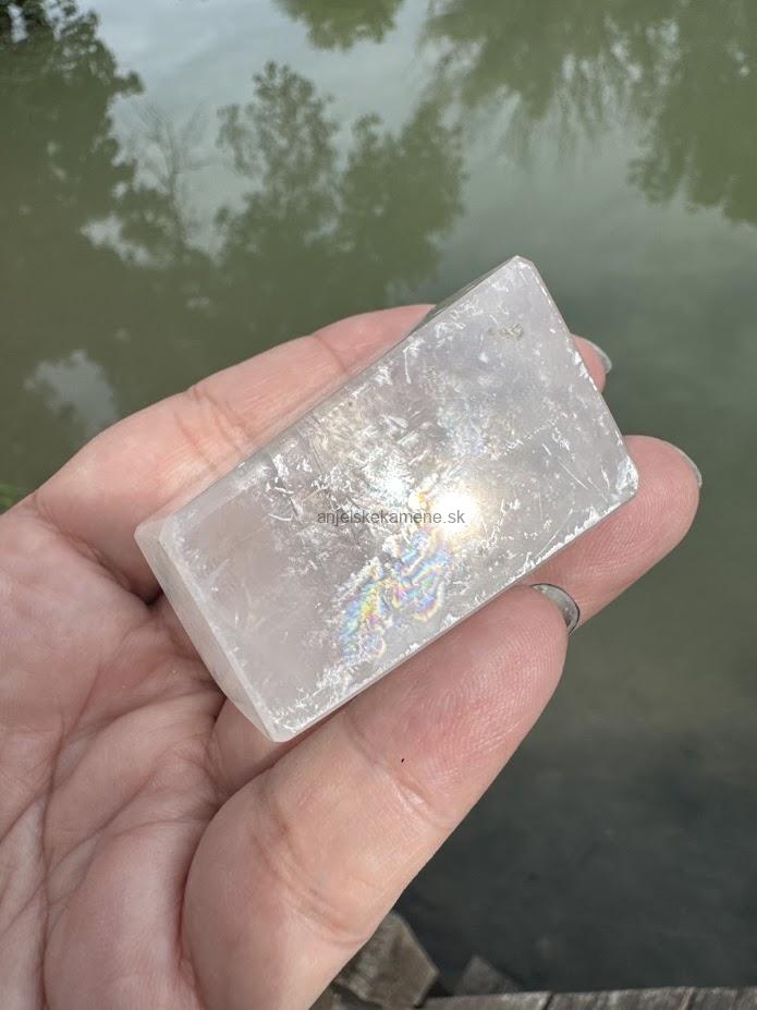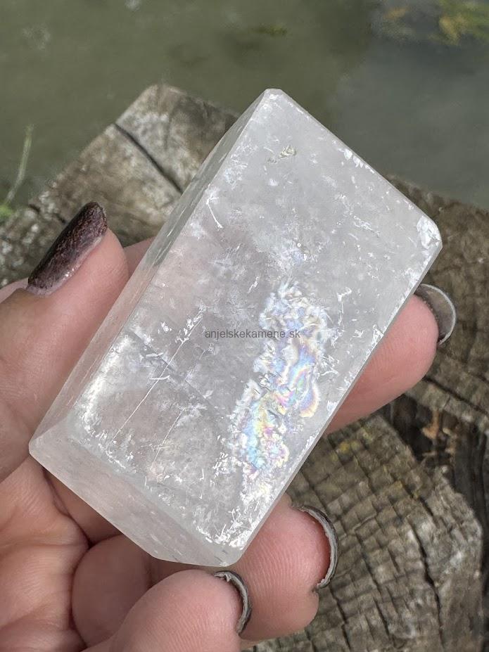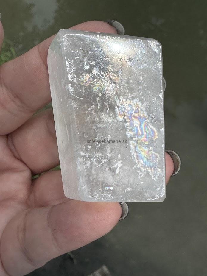 Optický kalcit s dúhou. Váha 86 g, veľkosť cca 5 cm