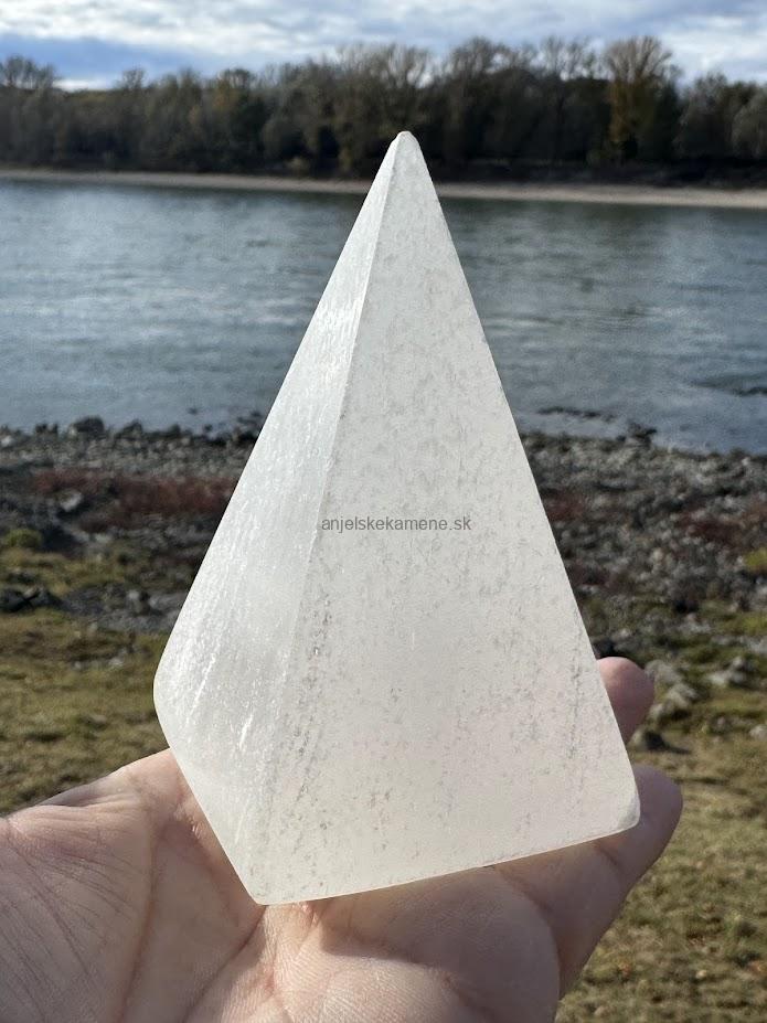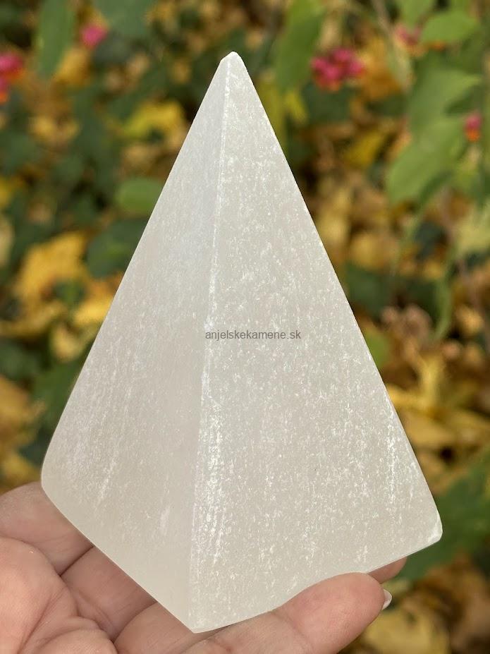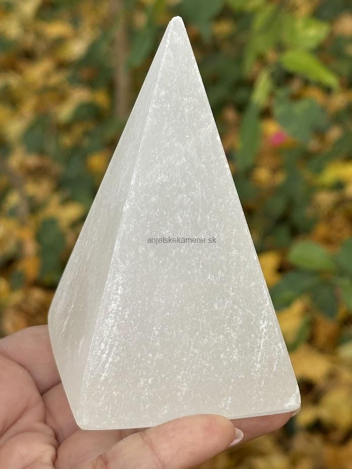 ♥ Pyramída zo selenitu, má dole otvor a tak sa dá použiť ako svietnik s LED svietidlom. Veľkosť 10 x 5 cm. Pôvod kameňa Maroko.