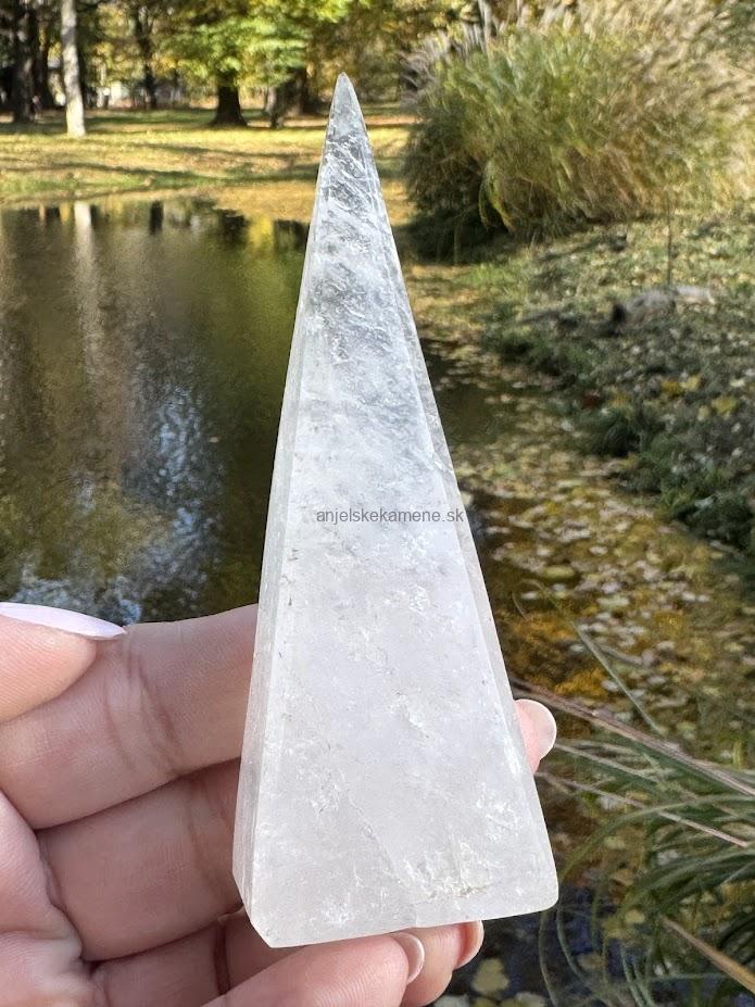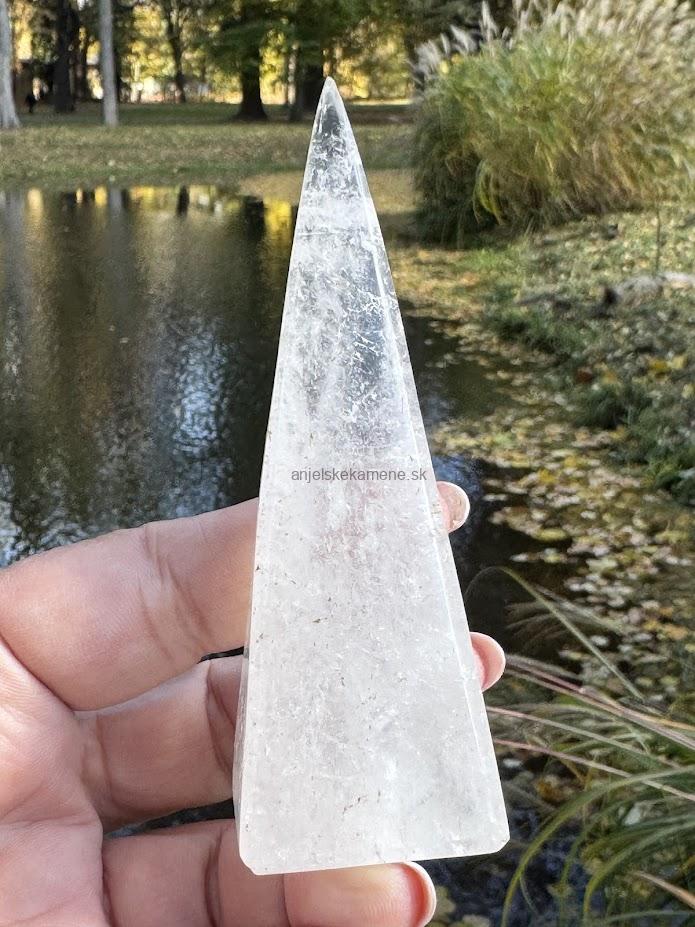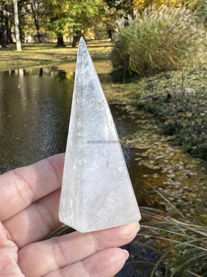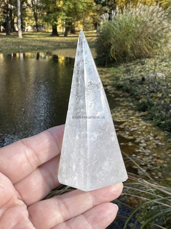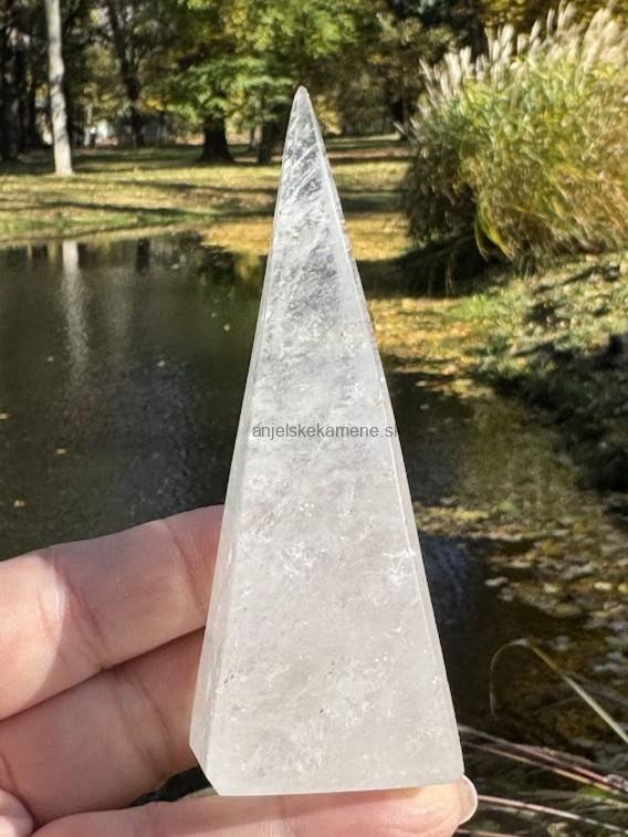 Pyramída z krištáľu horského. Veľkosť 10,2 x 3,5 cm. Pôvod Madagaskar.
