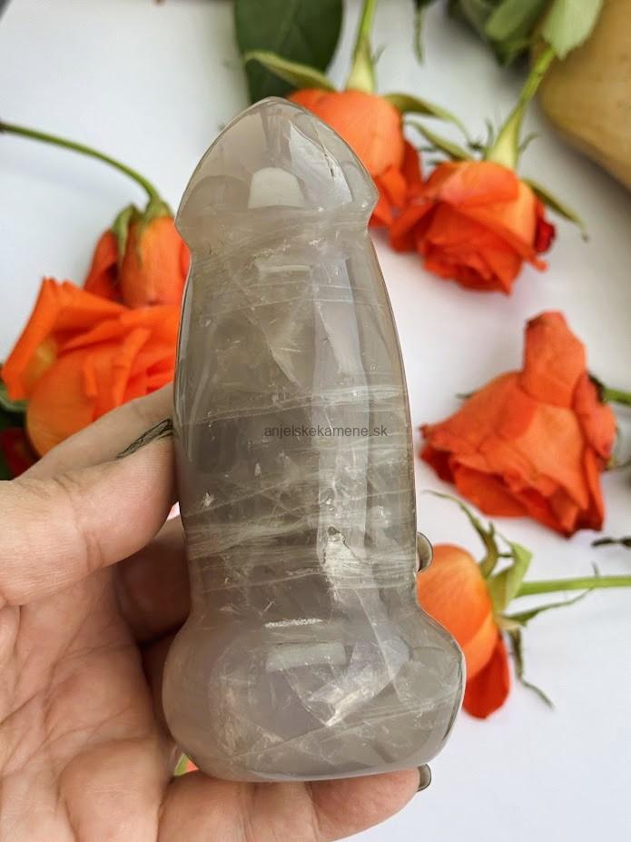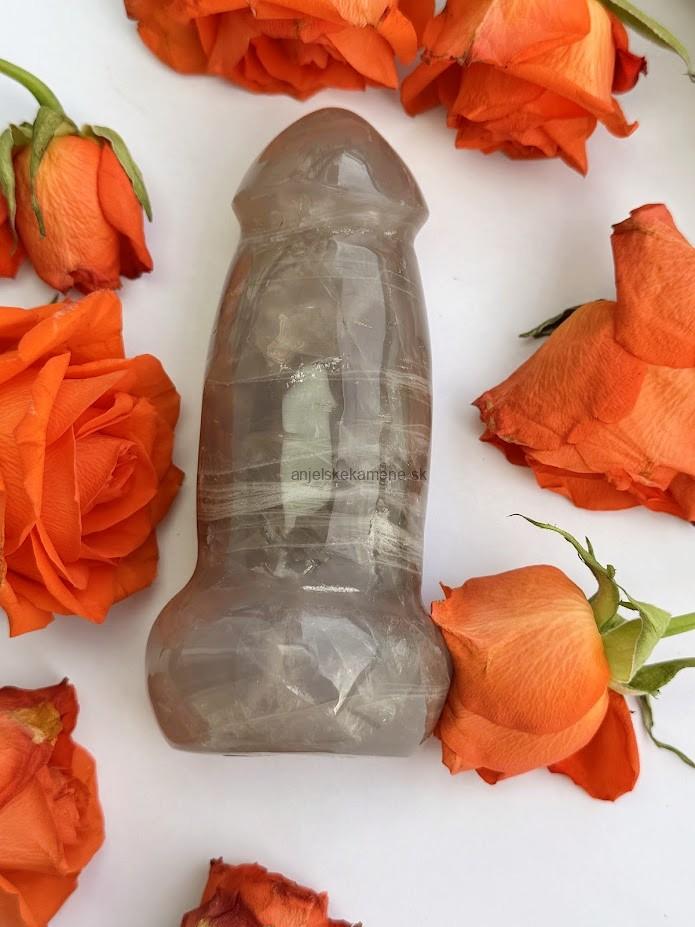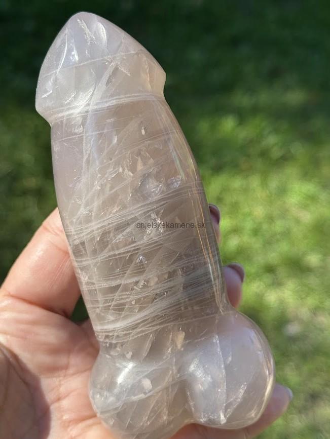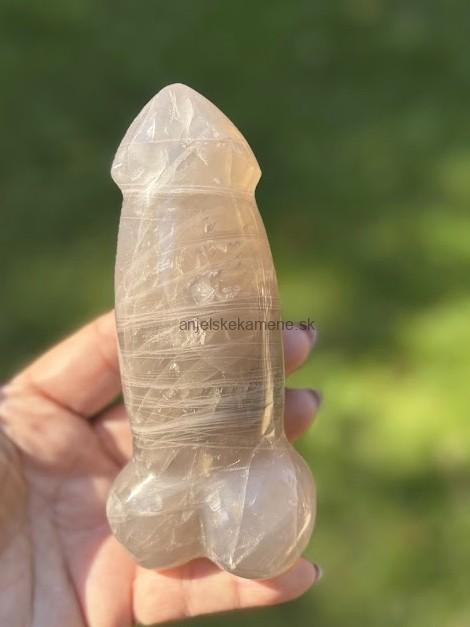 Falus z krištáľu v kombinácií s chalcedónom je celý posiaty dúhami. Pôvod Madagaskar.