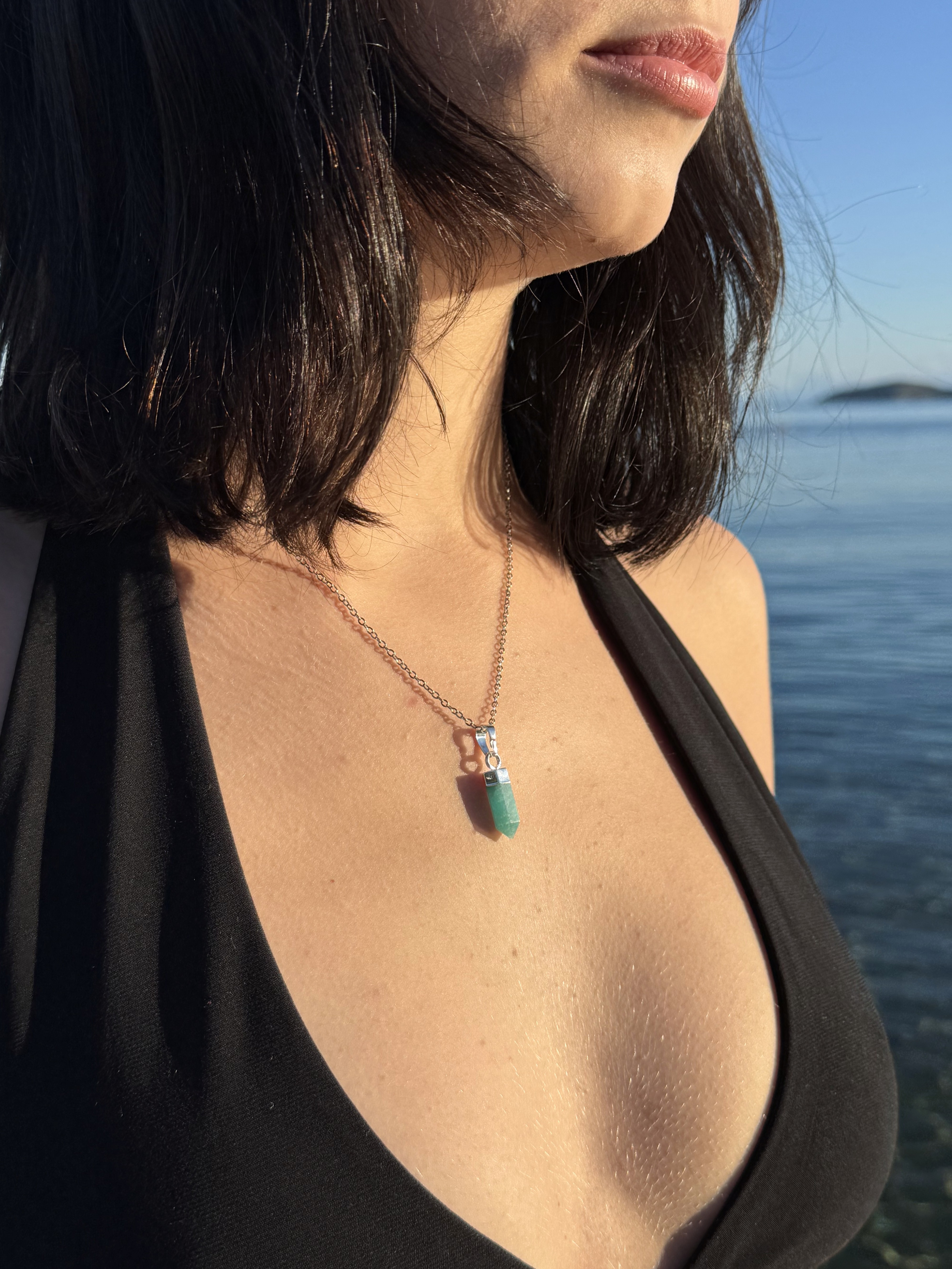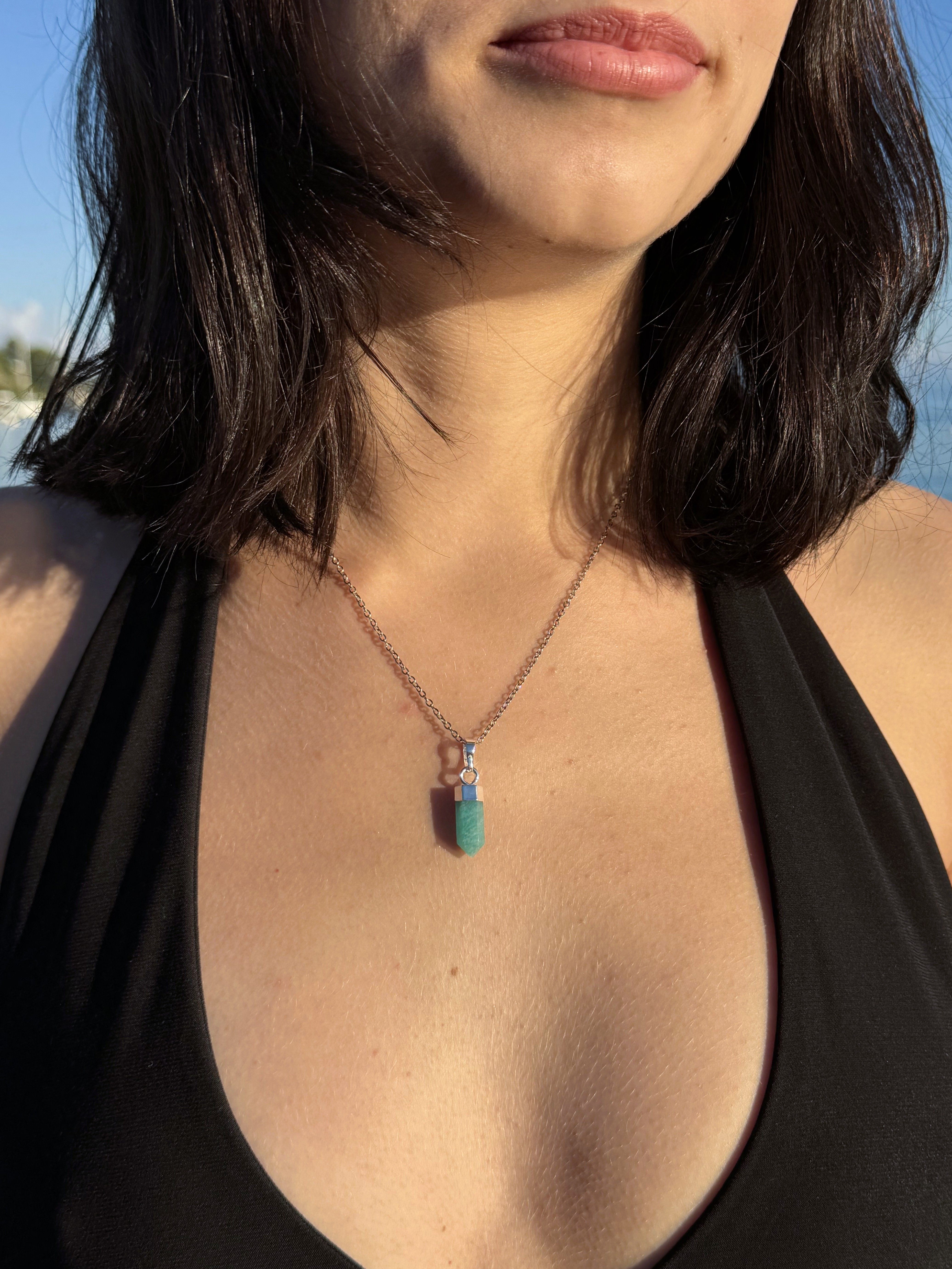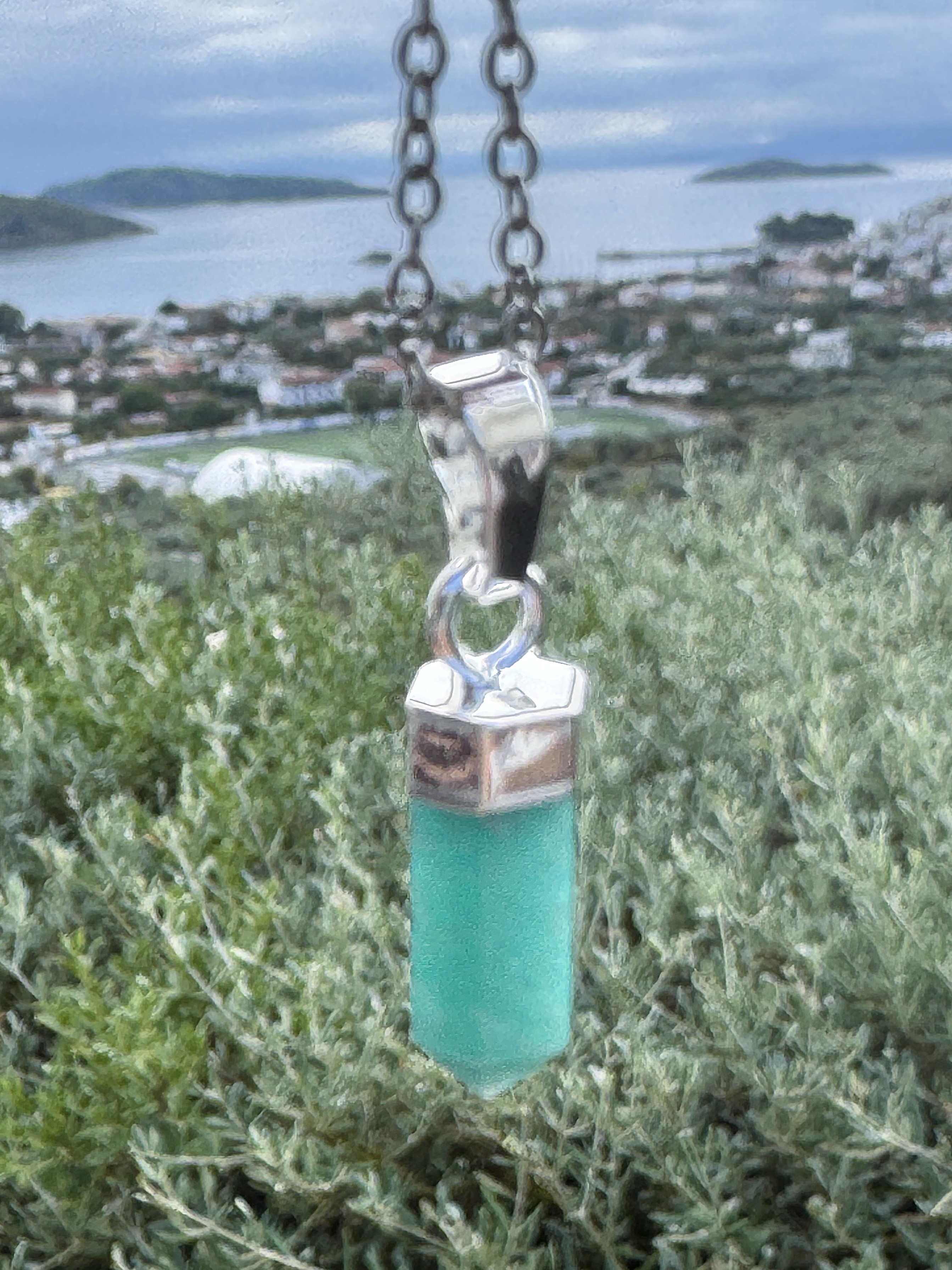 Mini generátor z amazonitu v prekrasnej farbe, uchytenie je potiahnuté striebrom. Pokiaľ hrot amaonitu smeruje dole, zamieri lúč duchovnej ríše do vášho telesného sveta, čo je poloha vhodná pre liečenie.