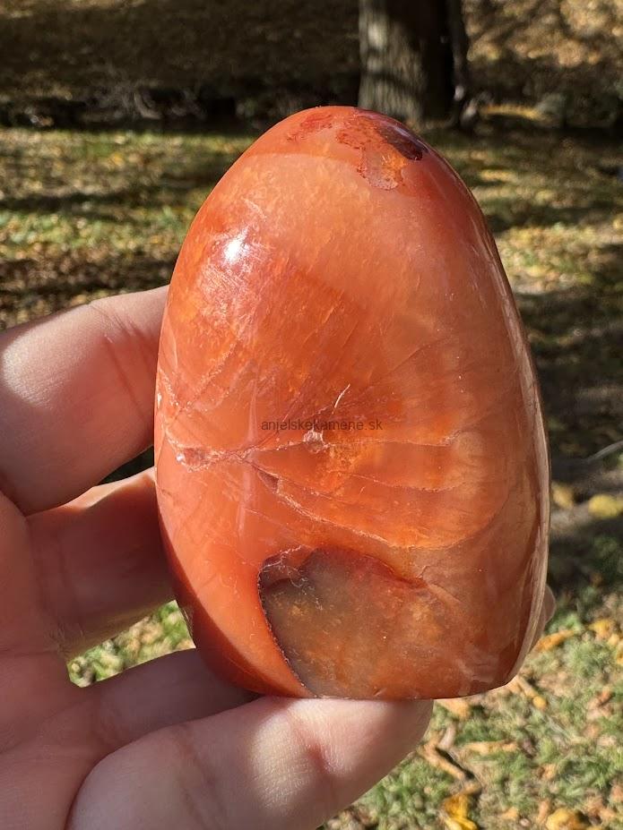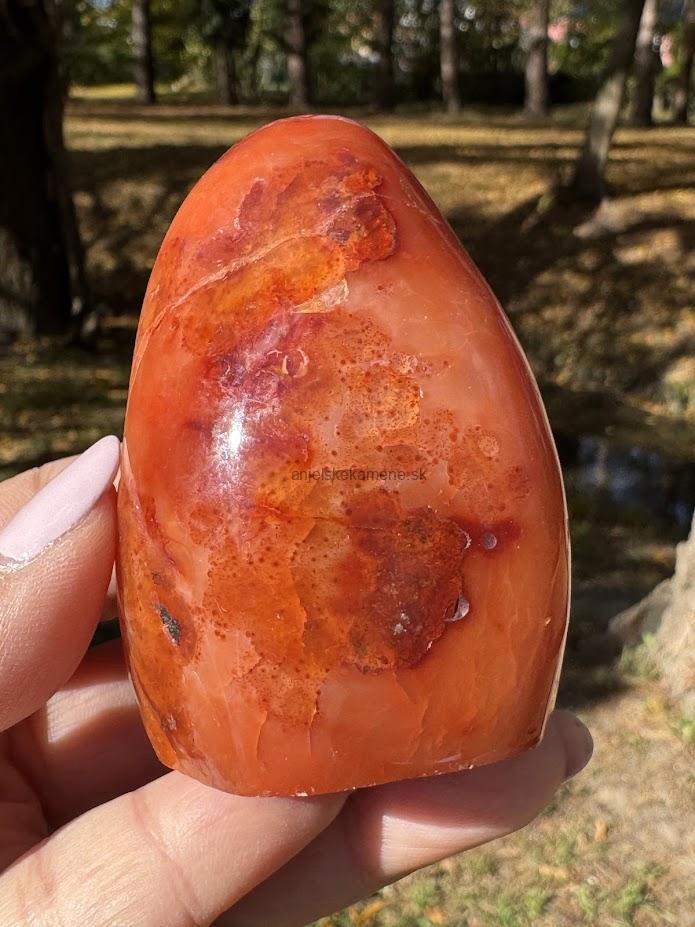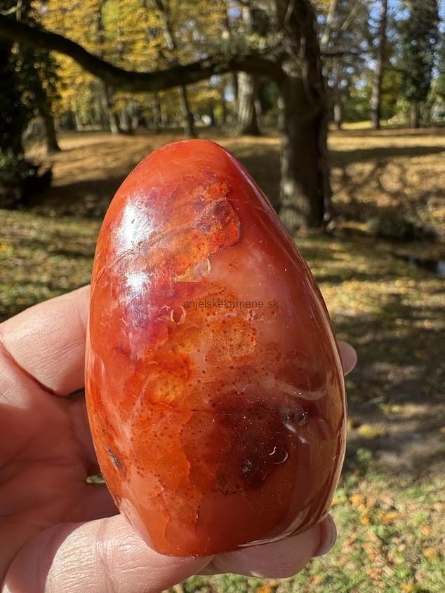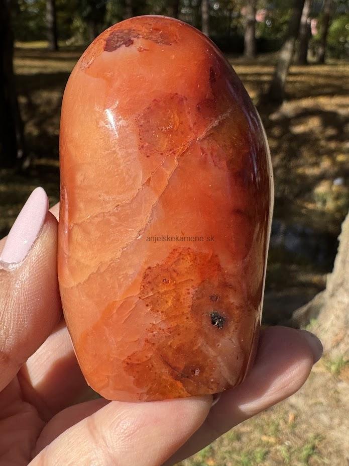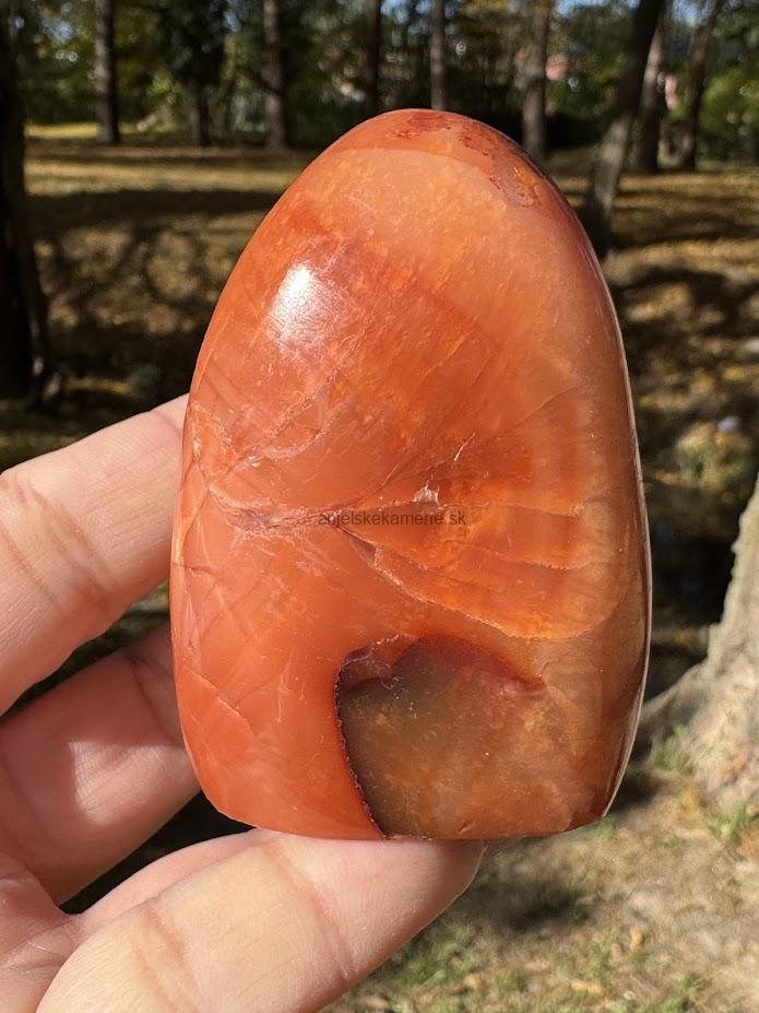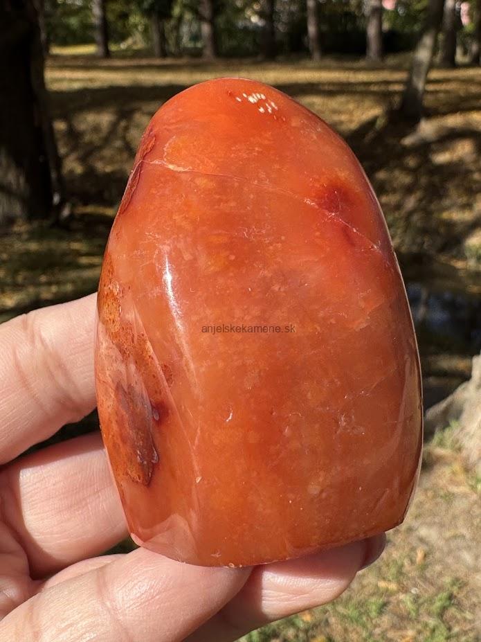 Free form z Karneolu vo veľkosti 7,4 x 7 cm, 249 g. Pôvod kameňa Madagaskar.