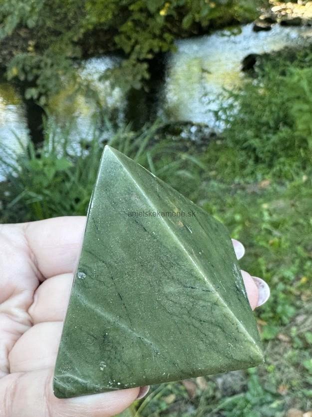 Nefrit v tvare pyramídy, Veľkosť 150g, 6,1 cm.
