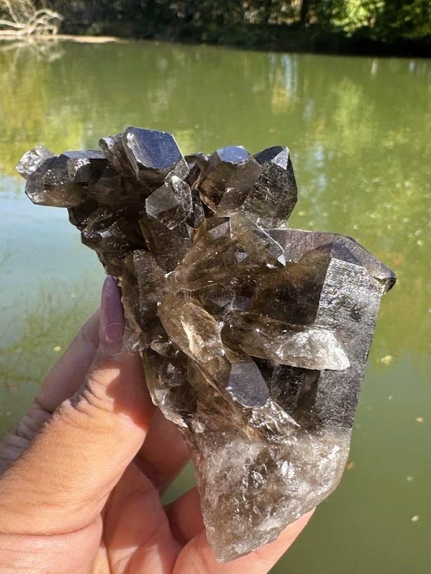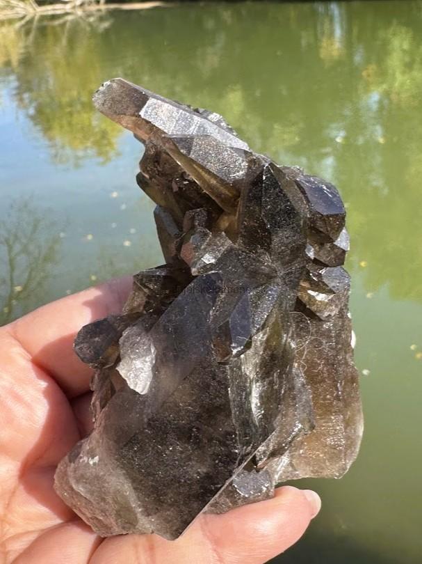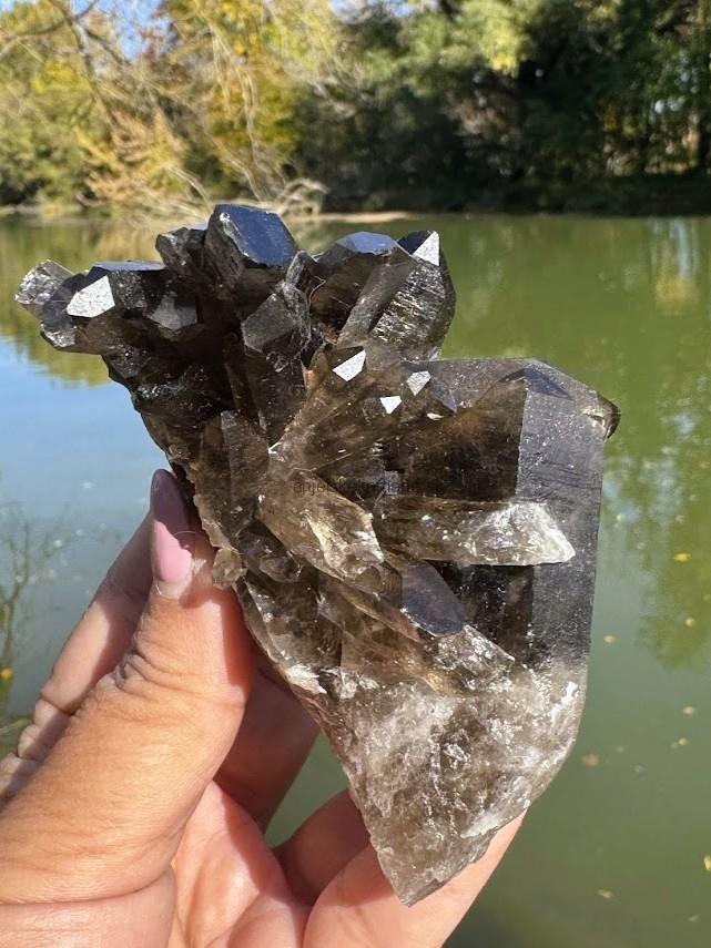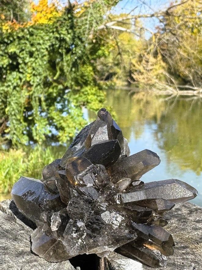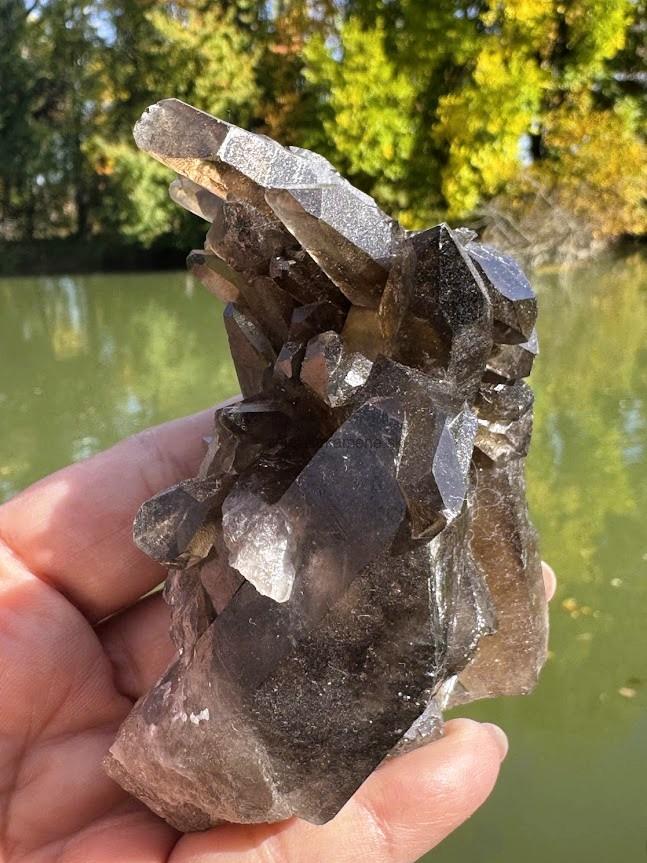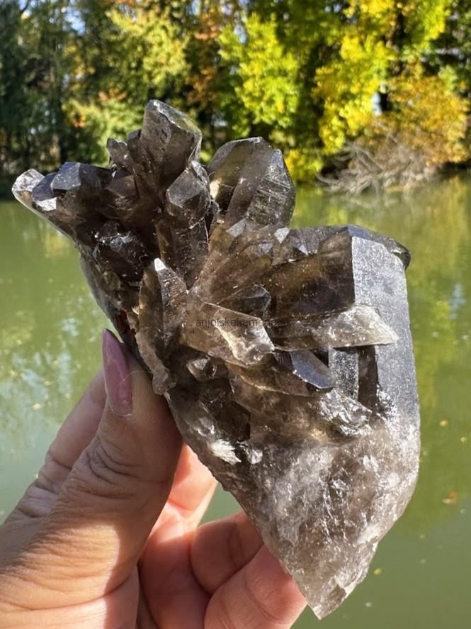 Prírodný kus z minerálu záhneda - MORION. Má tri prírodné hroty. Tento kus má v sebe malé dúhy a vnútorné Svetlo.
